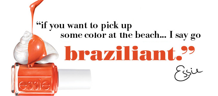 My most recent favourite collection has just come out by Essie, called Braziliant, I beleive? The collections named after its main colour, a coral orange that looks great with a tan, but works as well on my pale hands. The other colours are a range of blue and pink, all perfect colours for the beach!